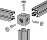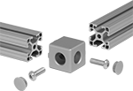 Butt and extended butt connectors join rails end-to-end to extend the length of rails without machining. Slide the connectors into a T-slot and tighten the screws to install.
