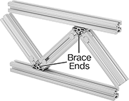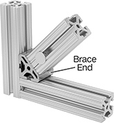 Use diagonal brace ends to make a brace of any length—a connecting rail (sold separately) between the brace ends is required. To install, use a tap (sold separately) to create a threaded hole, then fasten the brace end to a connecting rail using the included hardware.