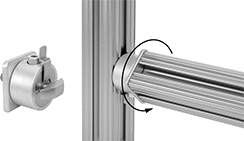 Miter concealed brackets connect rails with 45° or 90° miters. Slide them into the T-slots and tighten them in place with the included set screws.