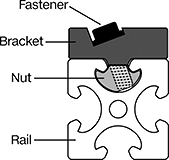 Quick-install brackets come with mounting fasteners attached to make installation easy. To install, drop the attached nuts into the T-slot, then tighten the screws a quarter turn.