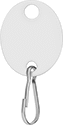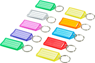 Oval, shamrock, and square tags have a spring snap that holds up to three standard-sized keys. They are often used with key-control cabinets.