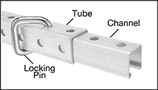 Slide the strut channel into the tube for telescoping length adjustments and secure with a locking pin (components sold separately).