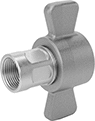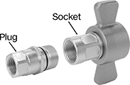 A complete coupling consists of a plug and socket (both sold separately). Sometimes referred to as wing-style couplings, the socket has a wing nut that makes it easy to tighten and loosen these couplings by hand. Make sure to thread the socket until it's covering the O-ring on the outside of the plug.