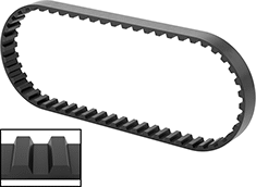 Known as double extra heavy duty belts, these XXH belts move heavy loads. They’re reinforced with fiberglass for high strength and to resist stretching over time. Made of neoprene, they’re quiet running. They have trapezoidal teeth.