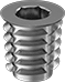 These 18-8 stainless steel inserts have good corrosion resistance and may be mildly magnetic. Also known as knife-thread inserts, they have sharp threads that cut into hardwood for a secure hold. Install using an installation bit and drill.