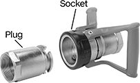 Note: To ensure a correct fit, make sure that the plug and socket have the same coupling size.