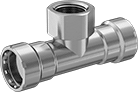 Press these fittings onto stainless steel pipe using a crimping tool for a permanent, leak-tight connection that's faster than threading or welding and doesn't require heat. Fittings have an internal stainless steel gripping ring and rubber O-ring that create a seal when crimped. They are designed to leak if fittings have not been crimped; a colored dot marks the leak path so it's easy to spot unsealed connections. All of these fittings are made of 304 stainless steel to resist corrosion from frequent exposure to water and fuels. They’re often used for water processing lines, heating and cooling systems, and fuel lines. They are comparable to Viega MegaPress fittings.