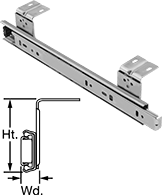 Closed Lg. | Travel Lg. | For Max. Drawer Wd. | Wd. | Ht. | Capacity per Pair, lbs. | Roller Type | Fasteners Included | Screw Size | Pair | |
