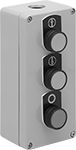 A protective plastic enclosure resists dents, chips, and cracks, so you can install these switches outside of panels. Mount them on a wall, for example, or tether them to a cord at your workstation. They actuate with a push for quick stops and starts. All are NEMA and IP rated to protect against corrosion, washdowns, and oil/coolant spraying. All have knockouts or integrated conduit connections to make it easy to attach conduit or add cord grips.