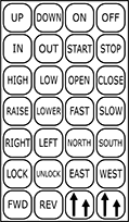 Use labels to replace worn stickers or change the function of a button. Packs include 28 commonly used functions, such as up, down, start, and stop.