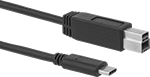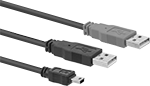 Use cords with mini-B plug × two A plugs when a standard USB cord can’t transfer enough power to operate external devices, like portable hard drives. Plug the USB-A plugs into your computer. The mini-B plug goes into your device to increase the power coming from your computer.