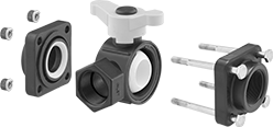 Bolt these valves to ANSI flanges—they meet ASME dimensional standards. They have a plastic body and a seal that withstand aggressive and corrosive solutions in chemical-processing applications.