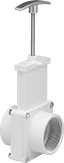 Valves with a pull handle, also known as slide valves, open and close faster than valves with a wheel handle. They’re often used as blast gates for precise flow control in low-pressure air conditioning and ventilation systems.