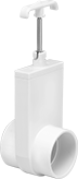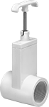 For a lightweight and economical alternative to metal valves, these are made of plastic. Insert unthreaded pipe into the socket ends and bond with PVC primer and cement to create a permanent, leak-tight connection. Valves gradually open and close to prevent system damage from suddenly starting and stopping flow. Pull the handle to open the valve. All valves have a rising stem that lifts as the valve opens and lowers as the valve closes to provide a visual indication of whether flow is on or off.