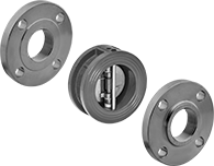 Sandwich these valves between two ANSI flanges for backflow prevention at a fraction of the weight of flanged check valves and a reduced pipeline footprint. ANSI flanges are sold separately. All valves open to allow flow in one direction and close when flow stops or reverses.