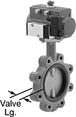 In addition to fluoroelastomer seats that resist a wide range of chemicals, these valves have no metal parts to corrode, so they’re often used for chemical-processing applications in corrosive conditions. All bolt to flanges for adjusting and regulating flow in flanged pipelines. Fix the lockable lever handle in place using a padlock (not included) with a shackle diameter up to 7/16”. Valves are wafer style, so they must be sandwiched between two flanges; all have unthreaded holes to help align the valve between the flanges.