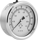 Gauges with 304 stainless steel case are cleaned and bagged to meet ASME B40.1, Level IV for oxygen service.