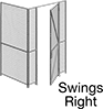 To access the inside of the enclosure, you will need to pick either a sliding or hinged door. All doors lock from the outside only. Door opening direction is determined when standing outside the partition.