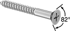 These screws are beveled under the head for use in countersunk holes. They press threads into material for a tight, secure hold. To prevent splitting, drill a pilot hole slightly smaller than the screw. Length is measured from the top of the head.