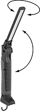 Style C have a light on the end, so they can be used as a flashlight. Use the flashlight when you need a narrow beam and unfold the head to cast light widely. For hands-free use, they have a magnet and a hook on the base.
