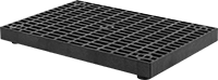 Stack platforms vertically and connect them horizontally to create various sizes and configurations. They have an open-grid design that allows liquids to drain and debris to fall through.