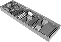 Extended-base ladders don’t have a counterweight, so they’re easier to push around than counterbalanced-base ladders. Their base is longer than a counterbalanced base—but it’s only 8 1/4" high, so it can be rolled underneath conveyors and other machinery. Add a counterweight to turn these ladders into counterbalanced-base ladders. With a counterweight in place, you can remove the front base extension and install the front casters on the base section under the stairs.