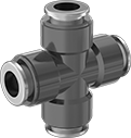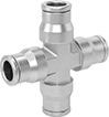 Insert tubing into these fittings and an internal gripping ring and O-ring hold the tubing tight. They are also known as instant fittings. To disconnect, push on the release ring and pull the tubing out of the fitting. Fittings have good corrosion resistance. Use them in low-pressure applications.