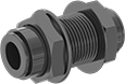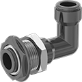 Also known as instant fittings, these chemical-resistant plastic fittings connect to tubing with a push. An internal gripping ring holds the tubing tight. To disconnect, push on the release ring and pull the tubing out of the fitting. Use these fittings in low-pressure applications.