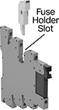 Relays with a fuse holder slot give you the option for additional overload protection. If the current exceeds the fuse’s rating, the fuse will blow and break the circuit. This prevents the relay from overheating, breaking, or causing a fire. The fuse holder is sold separately. You can use these relays without the fuse holder as a standard interface relay.