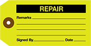 Tags are laminated in plastic so they hold up outdoors. Hang them on equipment in need of repairs using an included cable tie. Write on them using a pencil or permanent marker.