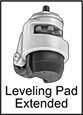 Turn the thumb wheel to lower or raise the leveling pad. Ratchet pulls out for easy adjustment and retracts out of the way when not in use. Nut adjustment requires a wrench to move the leveling pad.