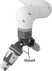 Use robot tool mounts (sold separately) with square, L-shaped, and X-shaped mounts for compatibility with different ISO mounting patterns.