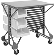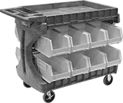 Total No. of Bins | Wd. | Ht. | Dp. | Cap., lbs. | Wd. | Ht. | Dp. | Cap., lbs. | Top Cap., lbs. | No. of Usable Sides | Color | Assembled or Unassembled | Choose a Bin Color | Each | Each | ||