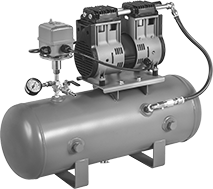 Generate a vacuum with no risk of oil contamination in your system. These pumps can also create compressed air for powering tools and controlling fluid motion. In vacuum generation, the maximum flow rate is the rate at which air is pumped before a vacuum is created. Flow rate steadily decreases as the pump generates the vacuum. The larger the tank, the longer it will take to form a vacuum.