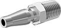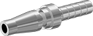 Plugs and sockets with a barbed end insert into plastic or rubber hose and secure with a clamp or a crimp-on hose ferrule.