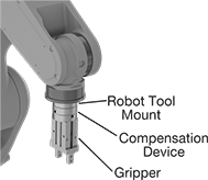 Compensation devices help you avoid jams and keep automated assembly, bin picking, and machine tending jobs running smoothly. They mount between your gripper and robot arm and have rubber pads that compress slightly when pressure is applied, allowing your grippers to adjust and grasp misaligned parts. These pads also compensate when aligning parts during placement, which increases efficiency and reliability in your process, while protecting parts and robots from wear.