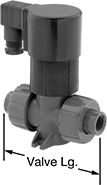 To stand up to aggressive and corrosive solutions in chemical-processing applications, these valves have a plastic body and a fluoroelastomer seal. They operate on electricity to automatically start and stop flow. Valves have union fittings on each end that separate into multiple pieces for easy installation and removal from your pipeline. They come with both threaded NPT fittings and unthreaded socket-connect female fittings.
