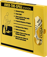 Soak up oil and water spills as soon as they happen—mount these dispensers on break room walls, near machinery, or anywhere spills may occur. To alert others of the spill, pads are high-visibility yellow and marked with Caution Wet Floor in English and Spanish. Refill pads are sold separately.