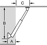| Dp. (A) | Clearance (B) | Lid Mounting Clearance (C) | For Lid Opening Angle | One Lid Support | Two Lid Supports | Material | Appearance | Mounting Position | Hold Lid Closed | Hardware Included | Screw Size | No. of Holes | Features | Each | |