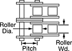 Roller Chain Trade No. | mm | in. | Roller Dia., mm | Roller Wd., mm | Working Load, lbs. | Length, ft. | Per Ft. | |