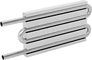 Place these heat exchangers in open tanks to heat or cool their contents by transferring heat from water or steam that flows through passageways in the panel. Pipe connections are located above the fluid level, so the heat exchangers can be removed without emptying the tank.