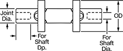 For Max. Shaft Dia. | For Max. Shaft Dp. | Joint Dia. | Overall Lg. | Max. Operating Angle | Max. Speed, rpm | Max. Torque, in.-lbs. | 3° Operating Angle | 10° Operating Angle | Joint Type | Includes | Specifications Met | Each | |