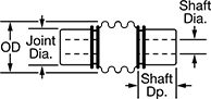 Dia. | Dp. | Joint Dia. | O'all Lg. | OD | Max. Operating Angle | Max. Speed, rpm | Max. Torque, in.-lbs. | 5° Operating Angle | 10° Operating Angle | Parallel Misalignment Capability | Joint Type | Each | |
