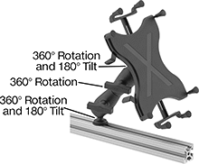 Attach and position phones, tablets, monitors, and computer accessories on T-slotted rails.