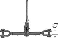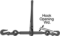 For Straight-Link Chain Trade Size | Capacity, lbs. | Max. Lg. | Take Up Lg. | Hook Opening Wd. | Dia. | Closure Type | Jaw Wd. | Eye Dia. | Handle Lg. | Material | Specifications Met | Each | |