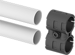 Fittings come in two pieces to clasp over rails, making assembly and disassembly quicker than our other framing. Use it to form temporary partitions, modular conveyors, and workstations. To assemble, clamp fittings onto the rail and tighten the included cap screw and nut. For permanent connections and added strength, fittings have a 5/32" hole to drill in an additional screw (not included).