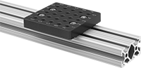 Rectangular mounting plates have room to drill custom mounting holes for attaching parts to T-slotted framing.