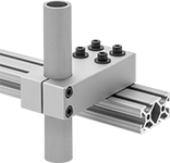 Tube holders attach tubes (sold separately) to a T-slotted framing system. Use them to create tube supports, glides, or racks. Rail-to-tube holders use a hex key to secure the tube in place. Quick-install tube-to-tube holders have a handle to secure the tube in place.