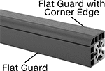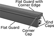Surface guards are flexible enough to be pushed into a rail slot, where they’ll stay without fasteners. Flat surface guards fit into a rail slot and protect one side when used alone. Flat surface guards with a corner edge press into a rail slot and protect one corner and a side. To protect two connecting sides of a rail, combine a flat surface guard with one that has a corner edge. Corner surface guards install into two rail slots and wrap around an entire corner.