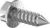 Serrations under the head act as a brake to prevent over tightening and damaging threads. Also known as needle point screws, they're designed with a pointed tip to pierce a starter hole in sheets up to 0.050" thick. They have a hex head for a secure grip with a wrench and a flange to reduce the risk of crushing thin metal. Made from steel, a zinc plating provides corrosion resistance in wet environments. Length is measured from under the flange. Head height includes the flange.